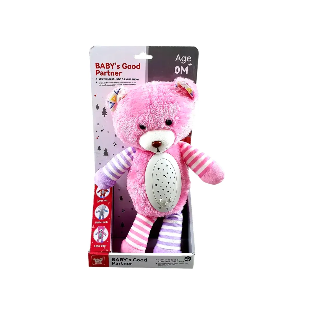 Dale a tu bebé noches mágicas y tranquilas con este adorable peluche musical con proyector. Su suave textura y su diseño tierno lo convierten en el compañero perfecto para abrazar a la hora de dormir. Gracias a su proyector incorporado, crea un show de luces suaves y relajantes en el techo, mientras reproduce sonidos calmantes que ayudan a conciliar el sueño de forma natural y segura.