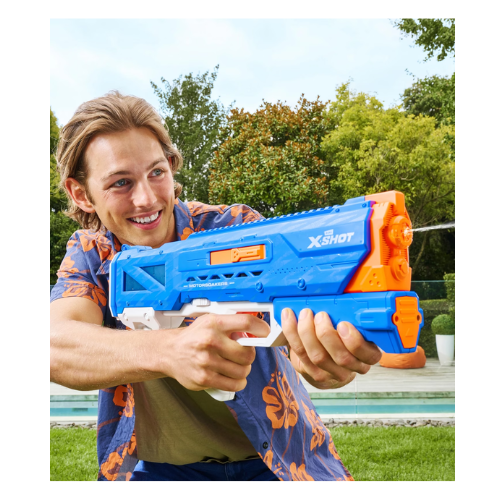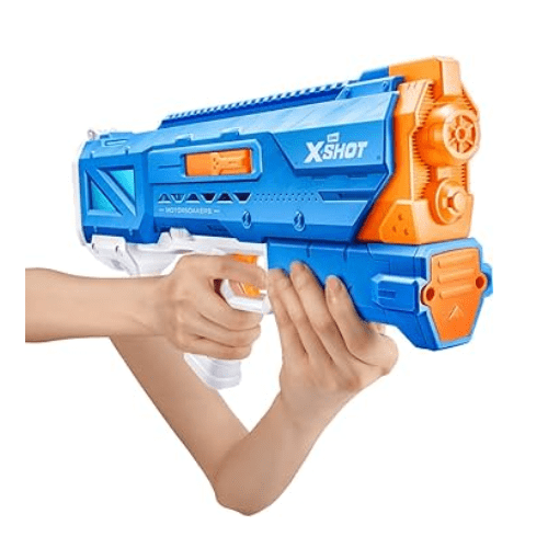 La pistola de agua XShot es perfecta para disfrutar de juegos refrescantes y llenos de acción. Cuenta con un diseño ergonómico y resistente, en atractivos colores azul, blanco y naranja, que permite un agarre cómodo y seguro para niños y niñas. Su depósito de agua integrado facilita la recarga rápida, mientras que su sistema de disparo manual ofrece un chorro potente y continuo, ideal para batallas de agua en el jardín, la piscina o la playa. Este juguete fomenta el juego activo, la coordinación y la diversión al aire libre, convirtiéndose en el aliado perfecto para el verano. Recomendada para mayores de 6 años.