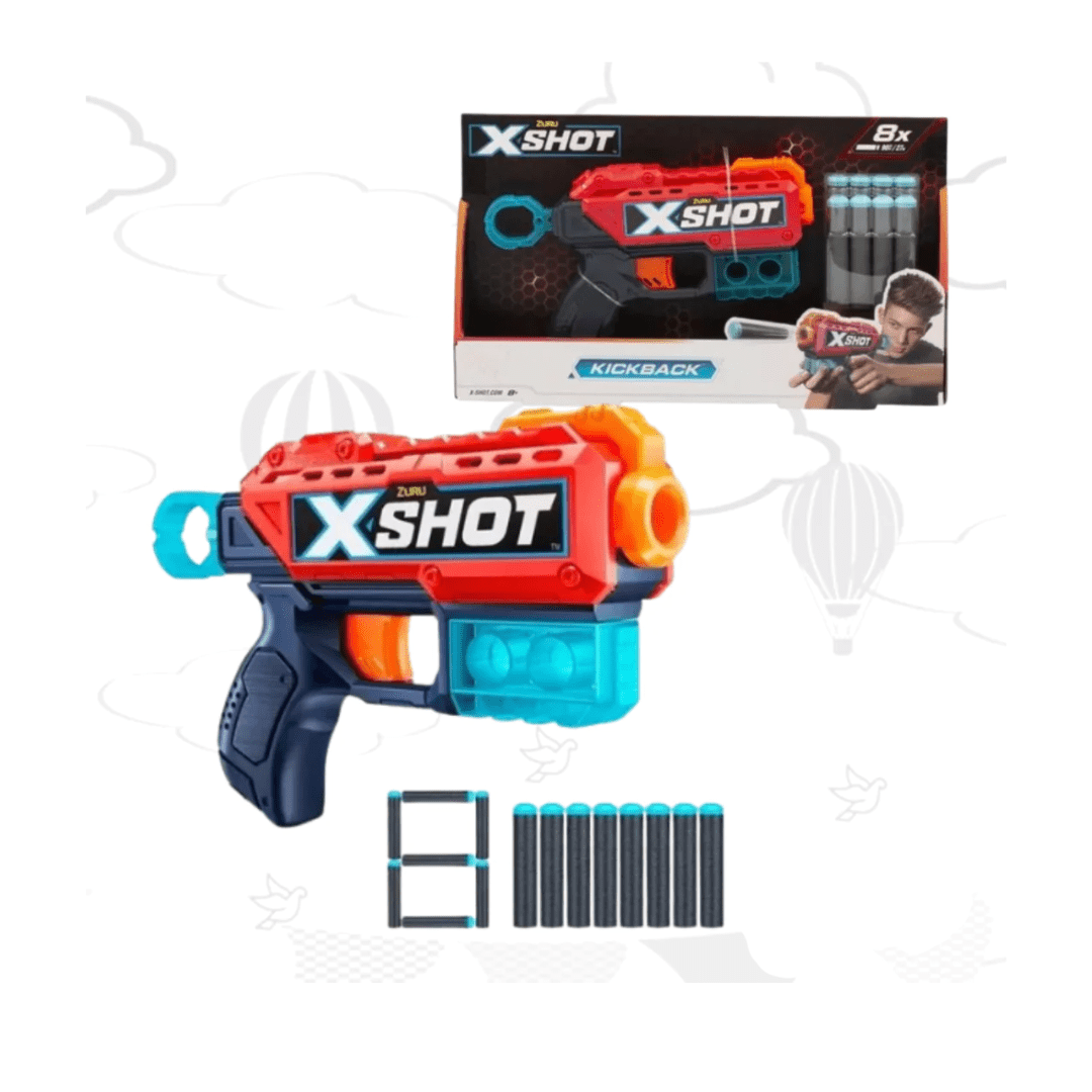 El XShot Kickback es un bláster de dardos de espuma diseñado para ofrecer máxima acción, precisión y diversión. Gracias a su sistema de retroceso, cada disparo brinda una experiencia más realista y emocionante, haciendo que cada partida sea más intensa.