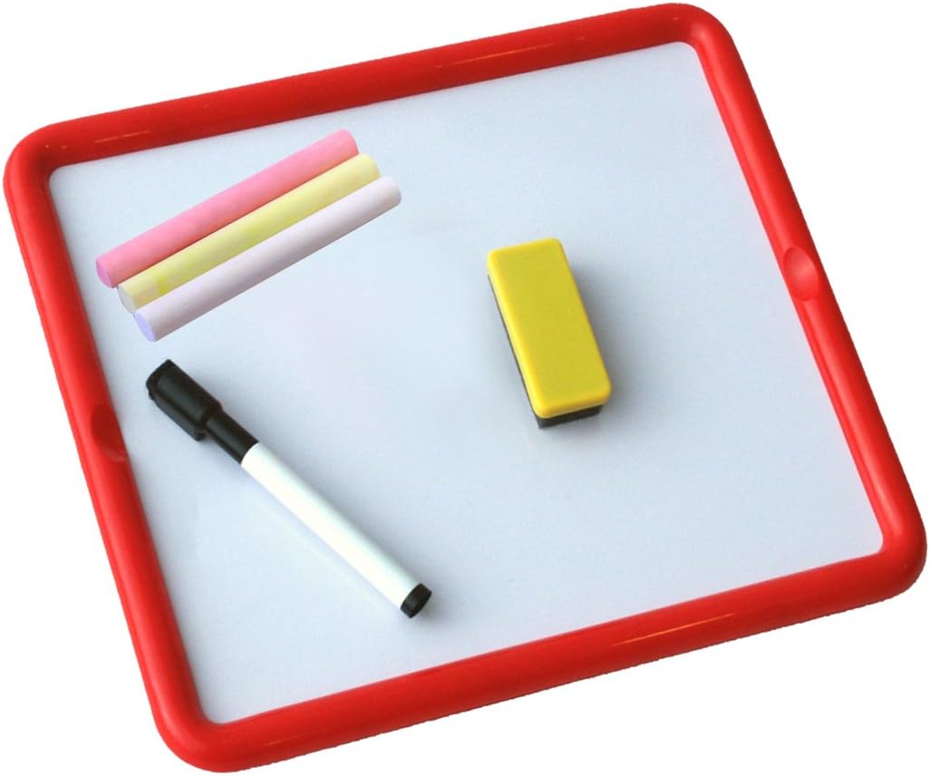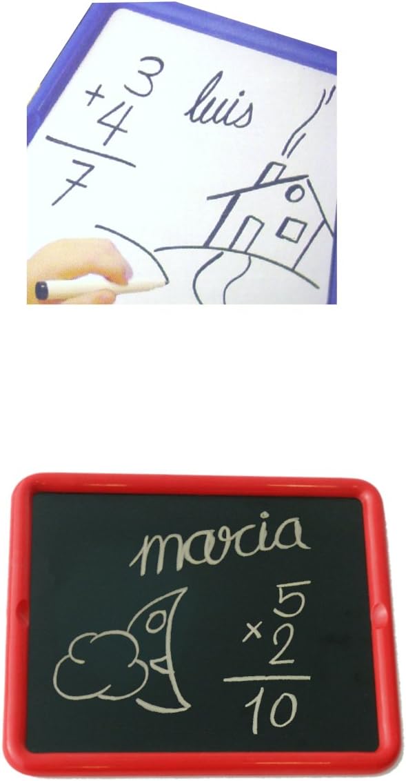 Set pizarra metálica de 30 x 26 cm. La cara blanca se utiliza con el rotulador, la cara negra con las tizas. Ambas caras pueden utilizarse con las letras y números magnéticos de nuestra colección.