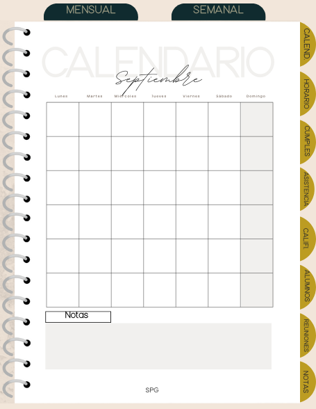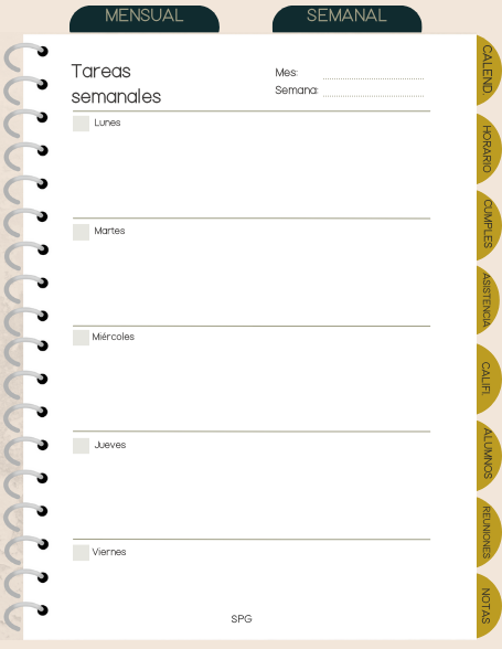 Planner del profesor tamaño ideal para GOODNOTES. Contiene: