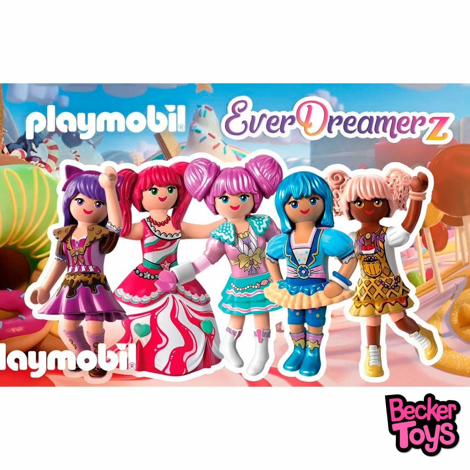 Playmobil Everdreamerz Series I incluye una caja cerrada con una figura de las 5 protagonistas del mundo de las golosinas. Cada figura viene con accesorios únicos, una tarjeta coleccionable, pegatinas, una pulsera de la amistad, abalorios y un colgante. Este set es perfecto para coleccionistas y ofrece una experiencia única al desempacar, con sorpresas en cada compartimento. Además, las figuras son altamente detalladas y están diseñadas para ser coleccionadas e intercambiadas.