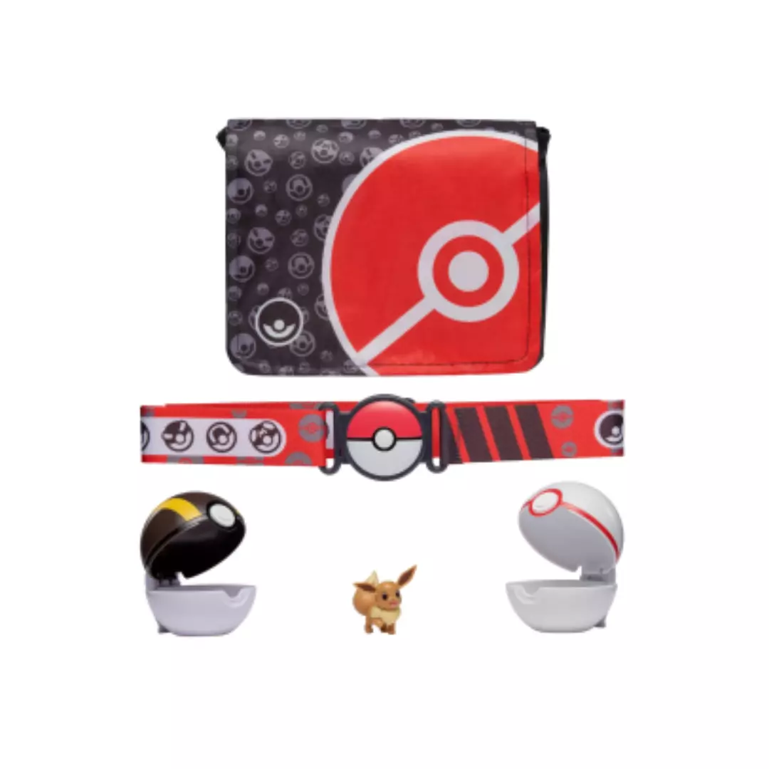 Conviértete en el mejor entrenador Pokémon con el nuevo juego de cinturones bandolera Pokémon Clip ‘N’ Go! El juego de cinturón bandolera Clip ‘N’ Go, que se puede usar fácilmente en la cintura y sobre el hombro, no es solo una manera fácil de sostener hasta 6 Poké Balls Clip ‘N’ Go, sino que se abre para revelar un tapete de batalla. ¡Para que entrenes con todas tus figuras Pokémon favoritas de 2 pulgadas!