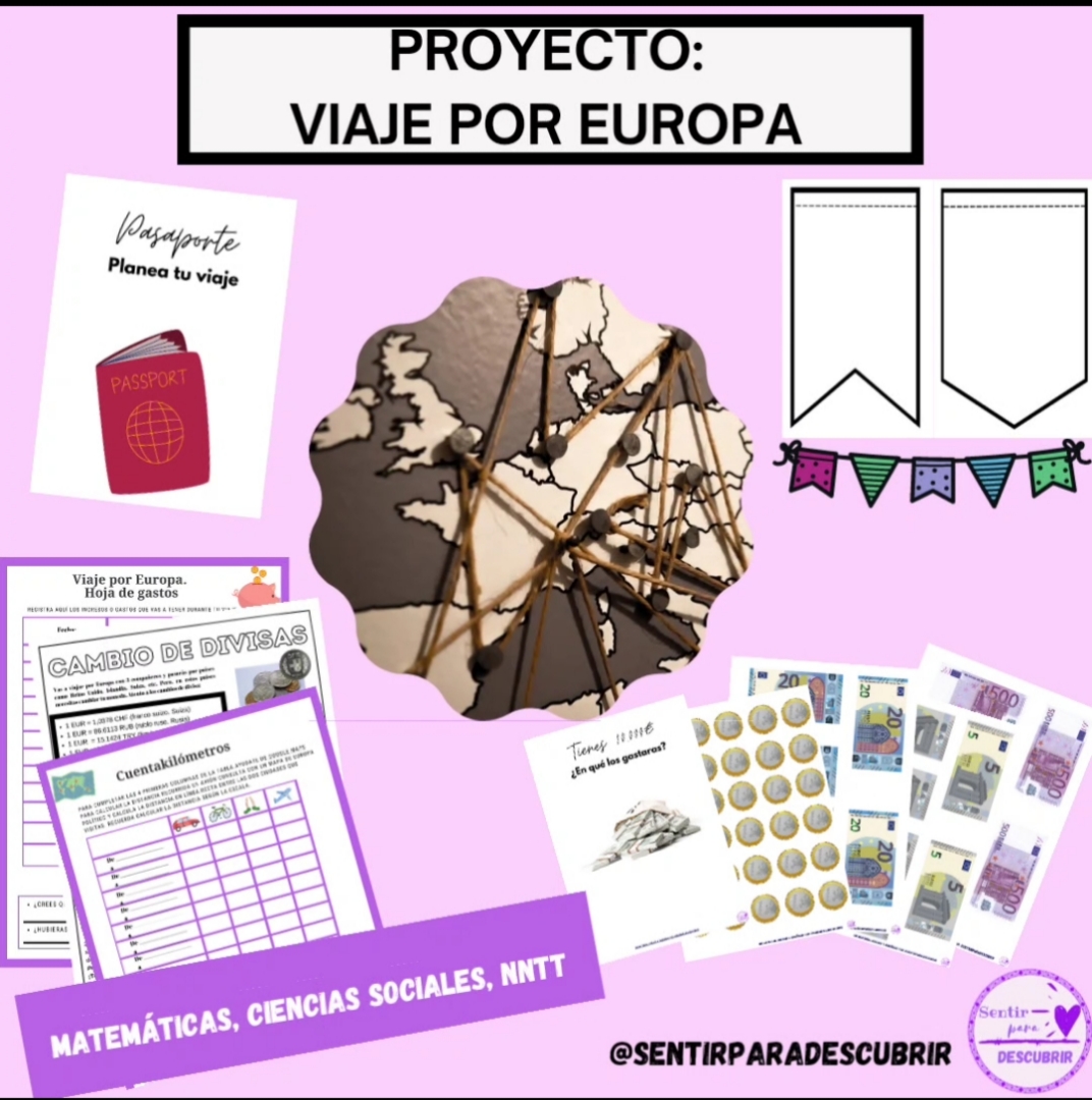 Un proyecto globalizado para tercer ciclo de primaria en el que los alumnos deben diseñar su viaje alrededor de Europa, contabilizar el dinero que gastan, planificar su ruta, sellar su pasaporte, etc.
