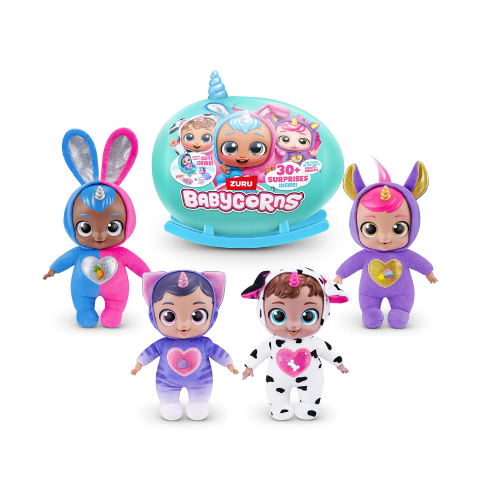 Rainbocorns Babycorns es una encantadora línea de juguetes sorpresa de ZURU diseñada para los más pequeños. Cada huevo colorido se abre para revelar un Babycorn: un tierno bebé gatito con cuerno de unicornio, suave y lleno de detalles adorables. En su interior también encontrarás sorpresas coleccionables como accesorios, stickers y otros complementos divertidos que hacen la experiencia aún más emocionante. Con diferentes personajes para coleccionar, Babycorns fomenta la sorpresa, el juego imaginativo y la ternura, siendo una opción ideal como regalo para niños y niñas.