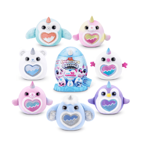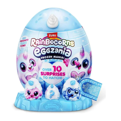 Rainbocorns Frozen Mania es una línea de juguetes sorpresa de ZURU inspirada en un mundo helado y brillante. Cada huevo colorido se abre para revelar un adorable Rainbocorn con diseño frozen, además de múltiples sorpresas escondidas como accesorios, stickers, slime o arena sensorial y otros elementos coleccionables. Cada personaje tiene detalles únicos con efectos brillantes y temática de hielo, lo que hace que la experiencia de abrir el huevo sea emocionante y divertida. Ideal para regalar y coleccionar, Frozen Mania invita a los niños y niñas a descubrir la magia del invierno con cada sorpresa.
