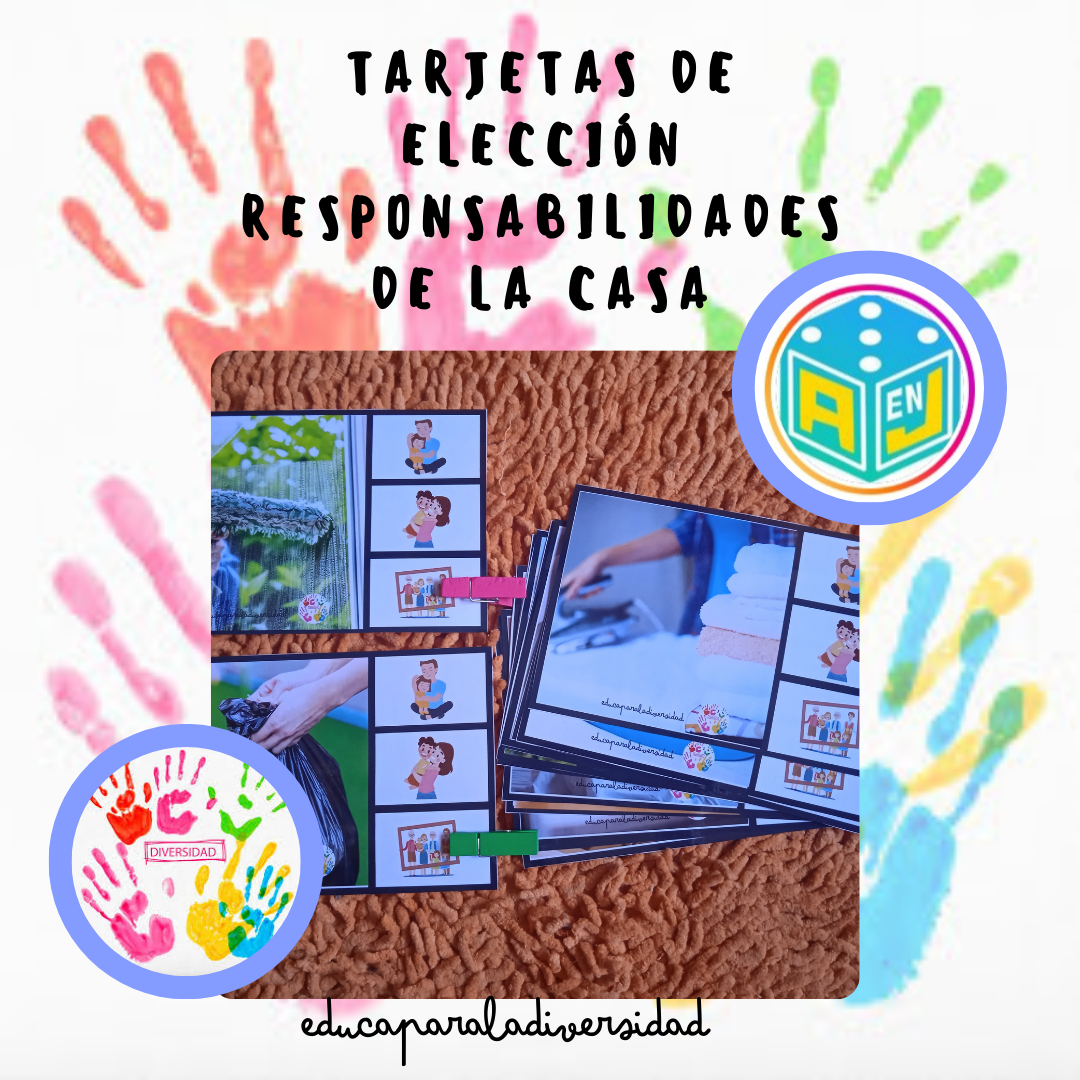 Para jugar con ellas, se deben observar los dibujos que aparecen en cada tarjeta y marcar con un elemento como una pinza o rotulador de pizarra la respuesta correcta reflexionando sobre quien debe llevar a cabo diferentes responsabilidades de la casa y porqué.