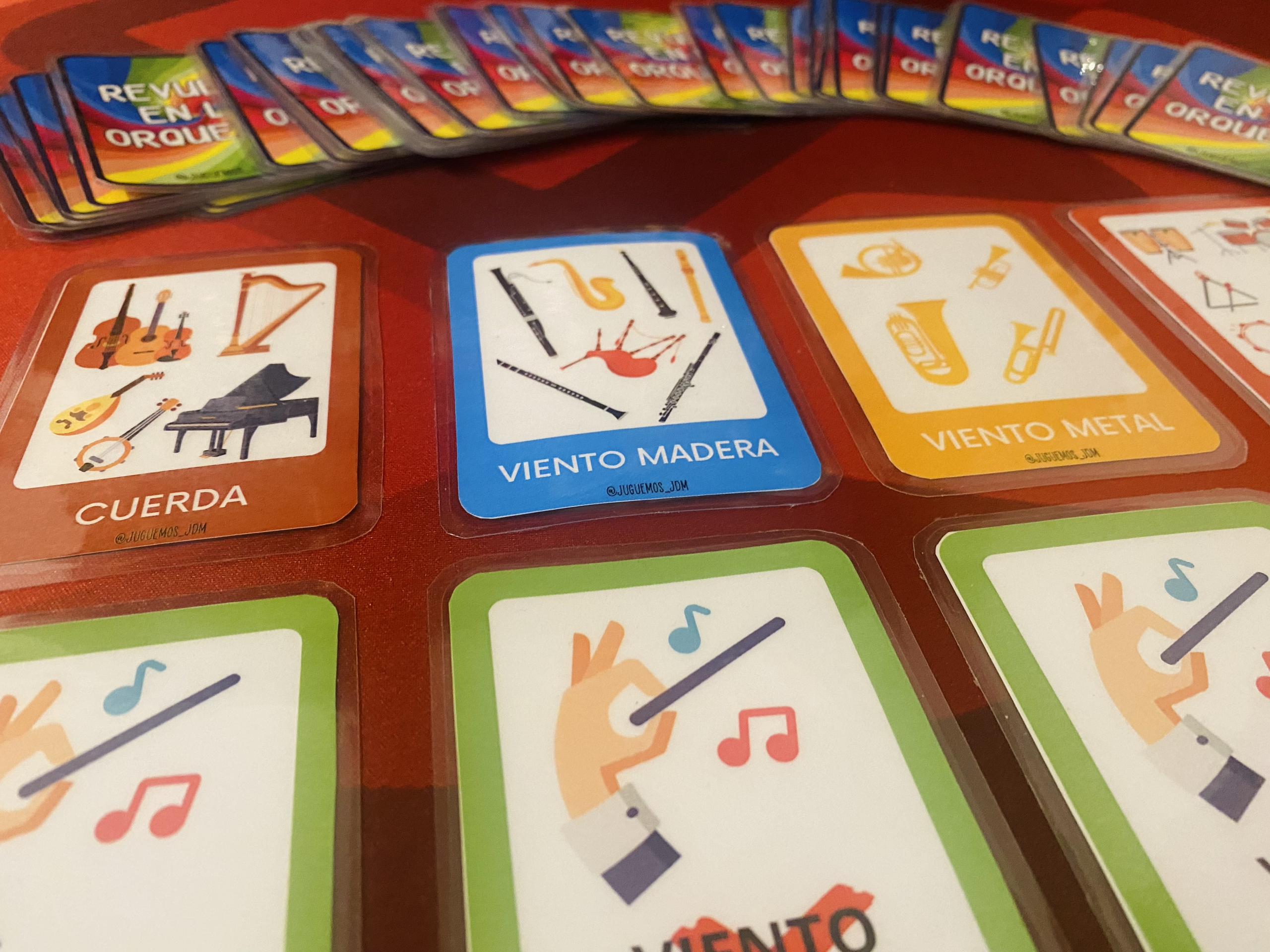 - 88 cartas de instrumentos (22 de cada familia)