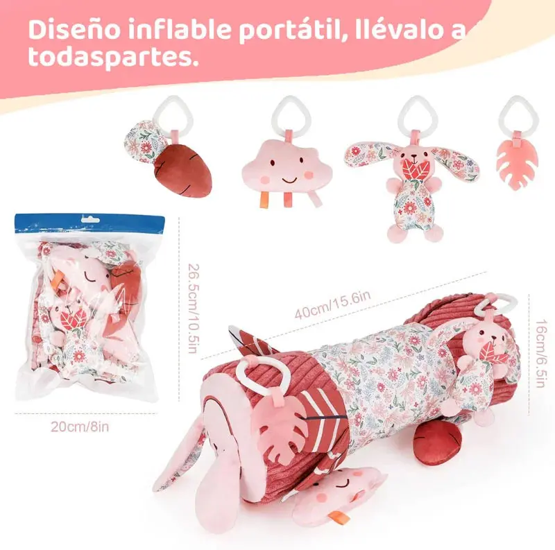 Este juguete sensorial multifuncional está diseñado especialmente para bebés de 3 a 6 meses, ayudándolos a disfrutar el tiempo boca abajo mientras fortalecen sus músculos, desarrollan coordinación y estimulan su curiosidad.