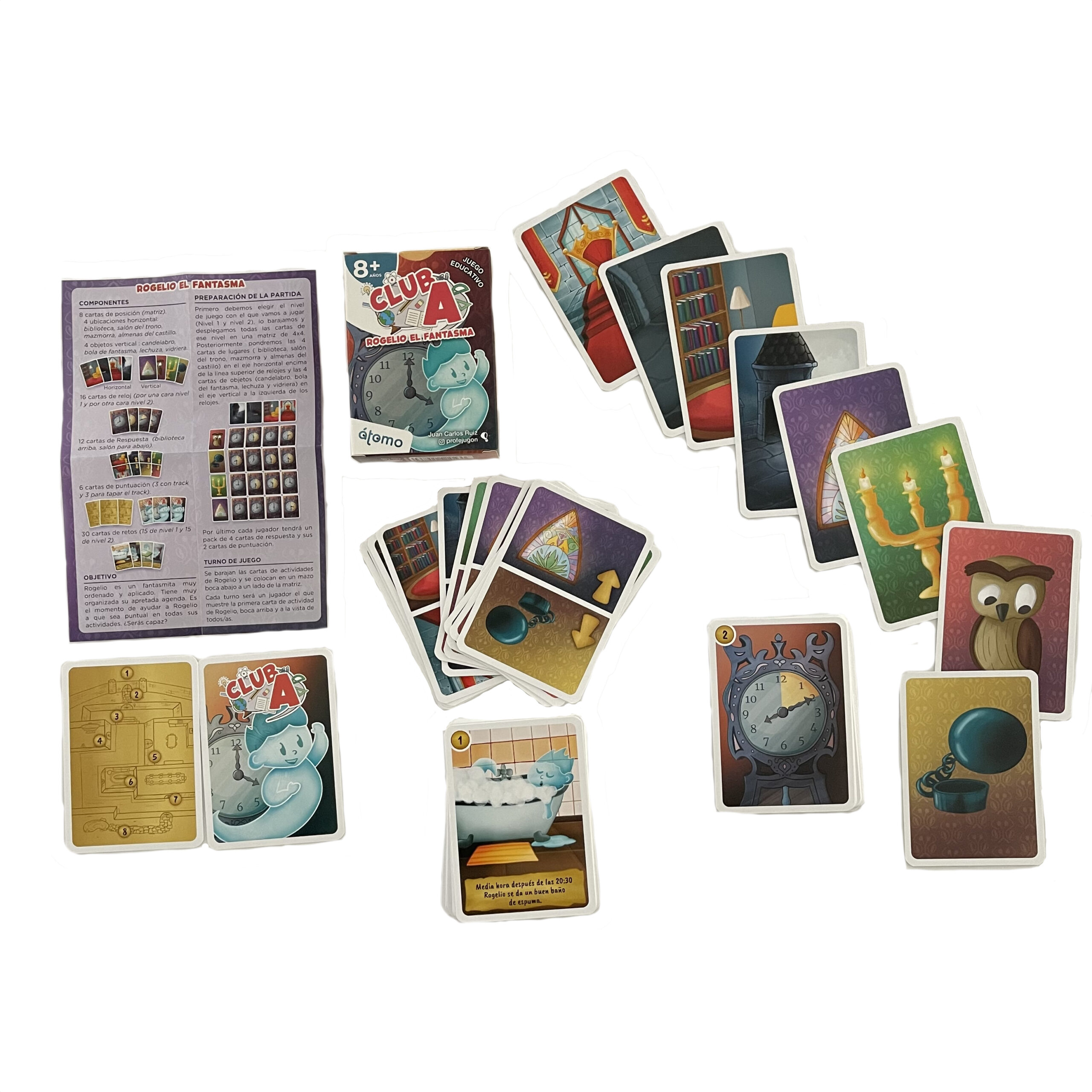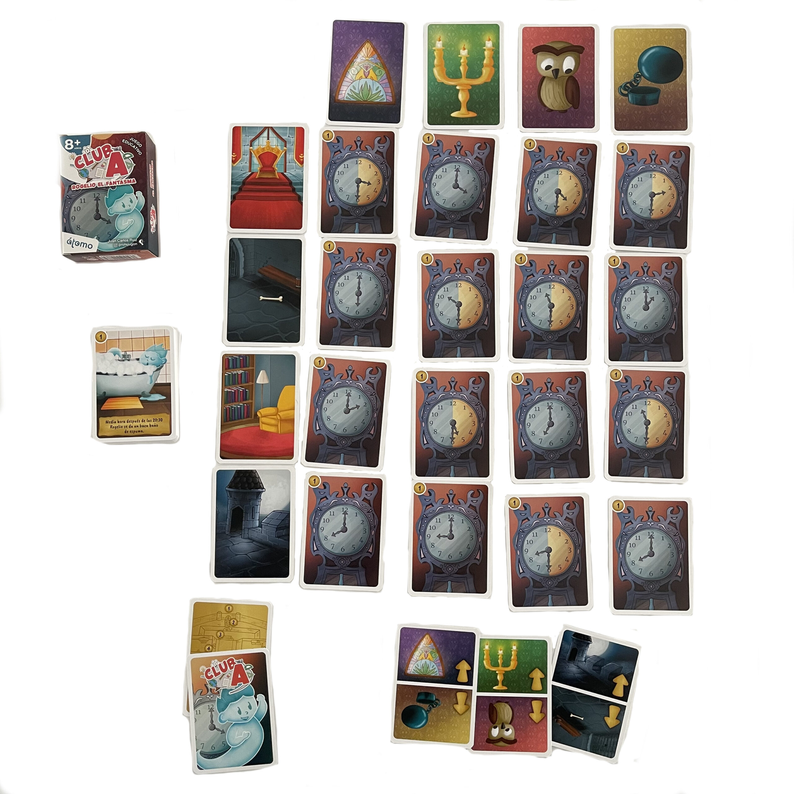 Los juegos de club A, consisten únicamente en una económica y transportable baraja de 50 cartas, con ilustraciones pensadas para que los niños disfruten. Su fácil mecánica, facilita que los niños puedan jugar en solitario o en grupos de cuatro.