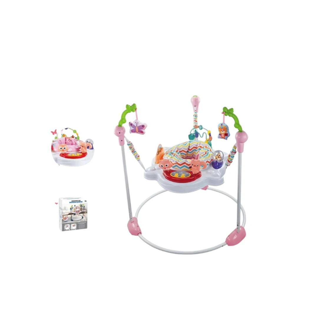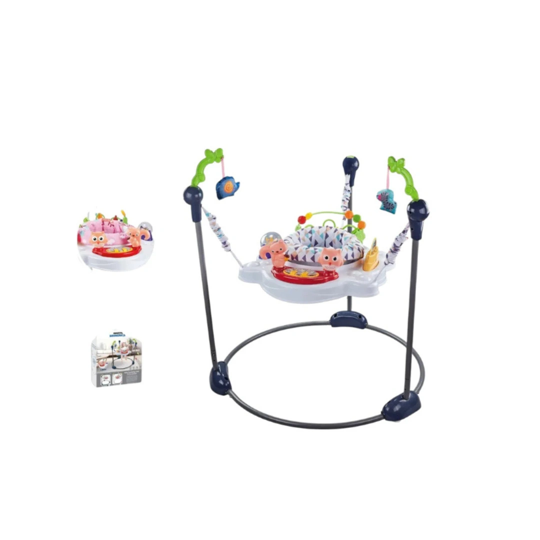 Su estructura robusta y segura con base antideslizante ofrece estabilidad en cada salto. Incluye un arco de juegos interactivo con música, colores vivos y elementos móviles que captan la atención del bebé, fomentando el desarrollo cognitivo y la motricidad gruesa de manera divertida. Fácil de montar, limpiar y transportar.