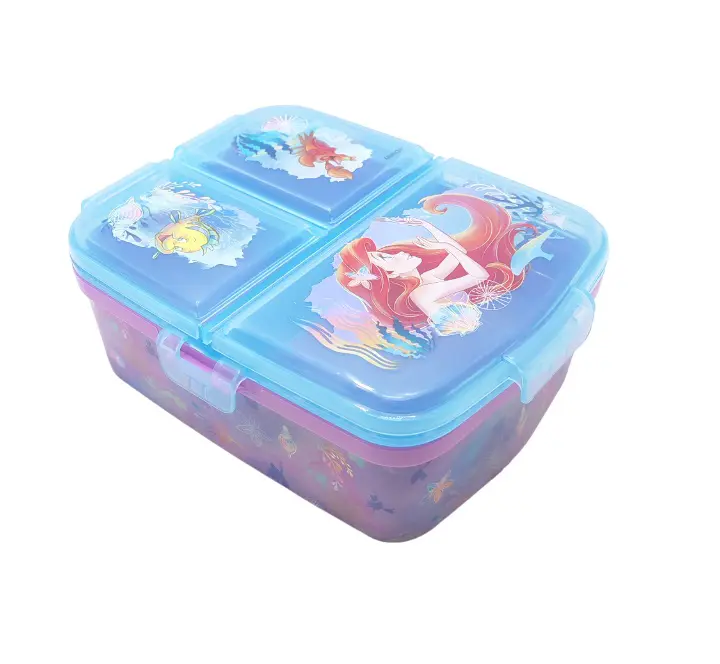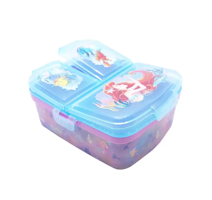 Fiambrera infantil múltiple con 4 compartimentos de Sirenita 2 compartimentos 1 mediano y 1 grande.