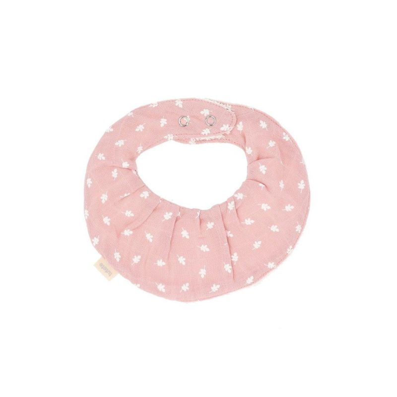 Babero con volantes fabricado en muselina de algodón, perfecto cuando tu bebé comienza con el proceso de dentición.