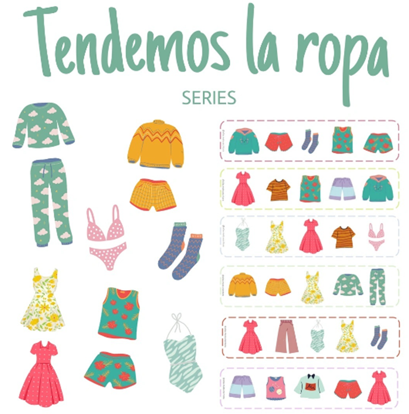 · Consiste en colgar la ropa en tu tendedero siguiendo los patrones.