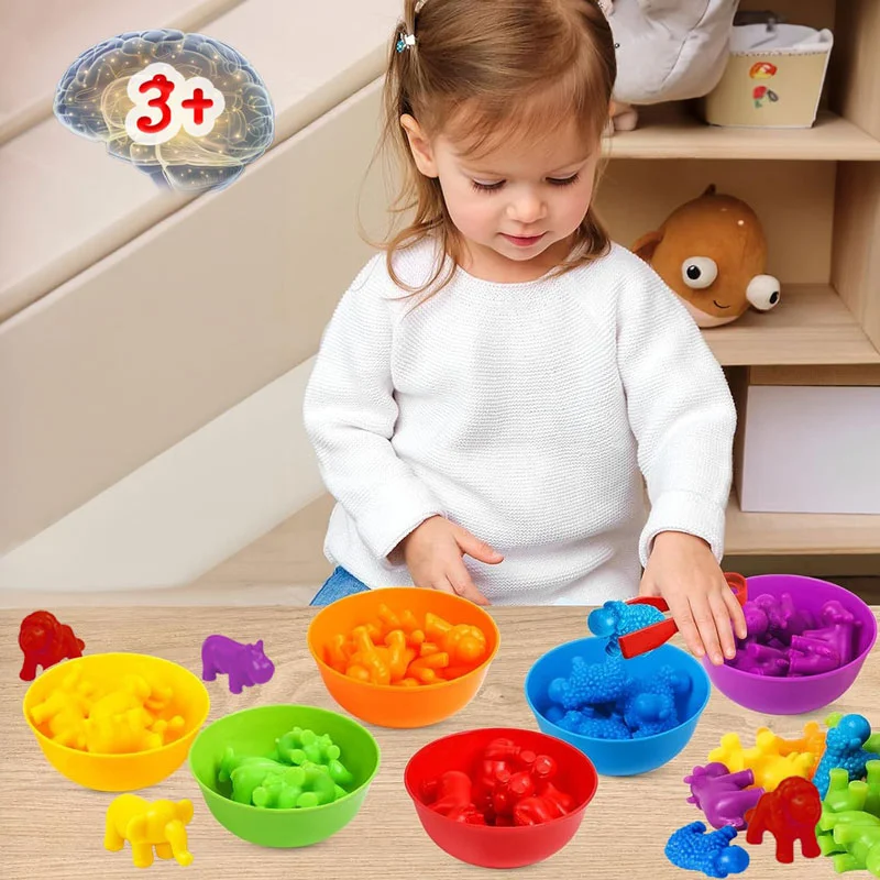 Este adorable set incluye 28 muñequitos de animales en colores vibrantes, 6 contenedores de clasificación y 2 pinzas, todo diseñado para estimular el desarrollo de tu pequeño mientras se divierte.