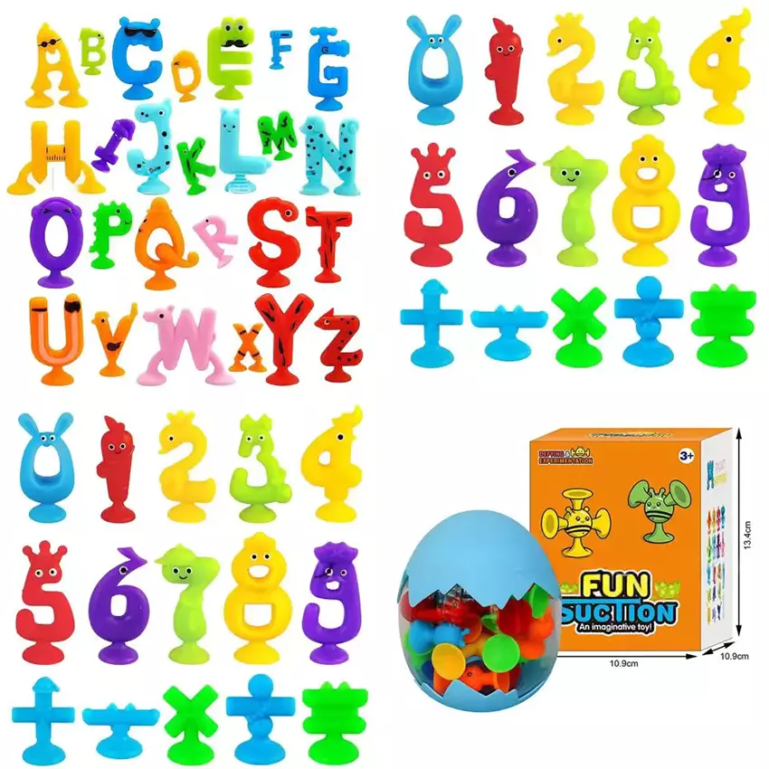 Elementos incluidos: 1 Set de Juguetes con Ventosa – Letras y Números con 56 piezas
