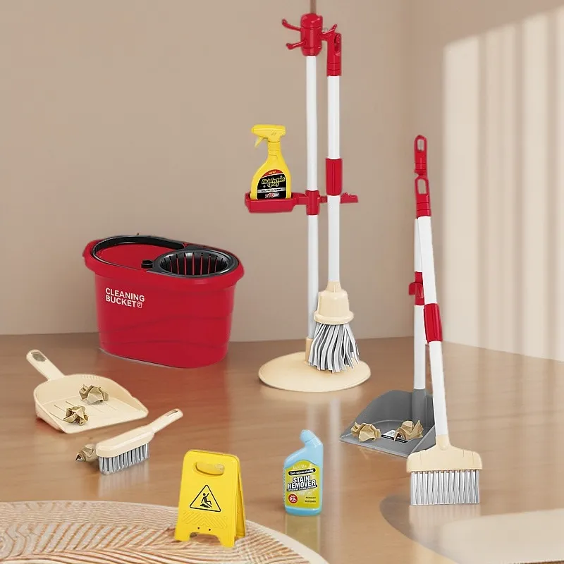 Un adorable set de limpieza que incluye todo lo necesario para imitar las tareas del hogar.