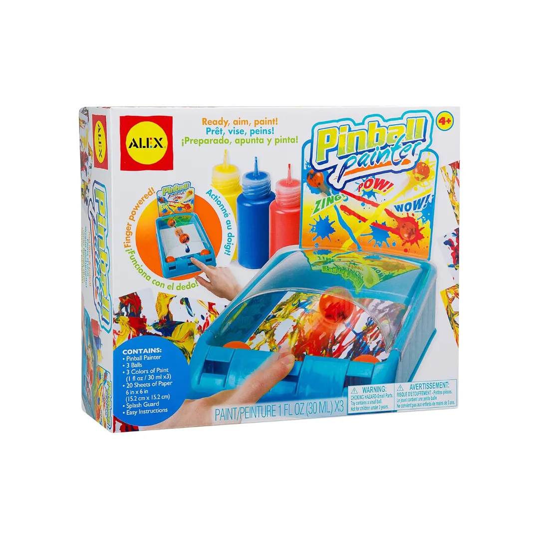 - Incluye todo lo necesario: máquina de pinball, 3 bolas, 3 colores de pintura (30 ml cada uno), 20 hojas de papel de 15.2 cm x 15.2 cm y protector contra salpicaduras.