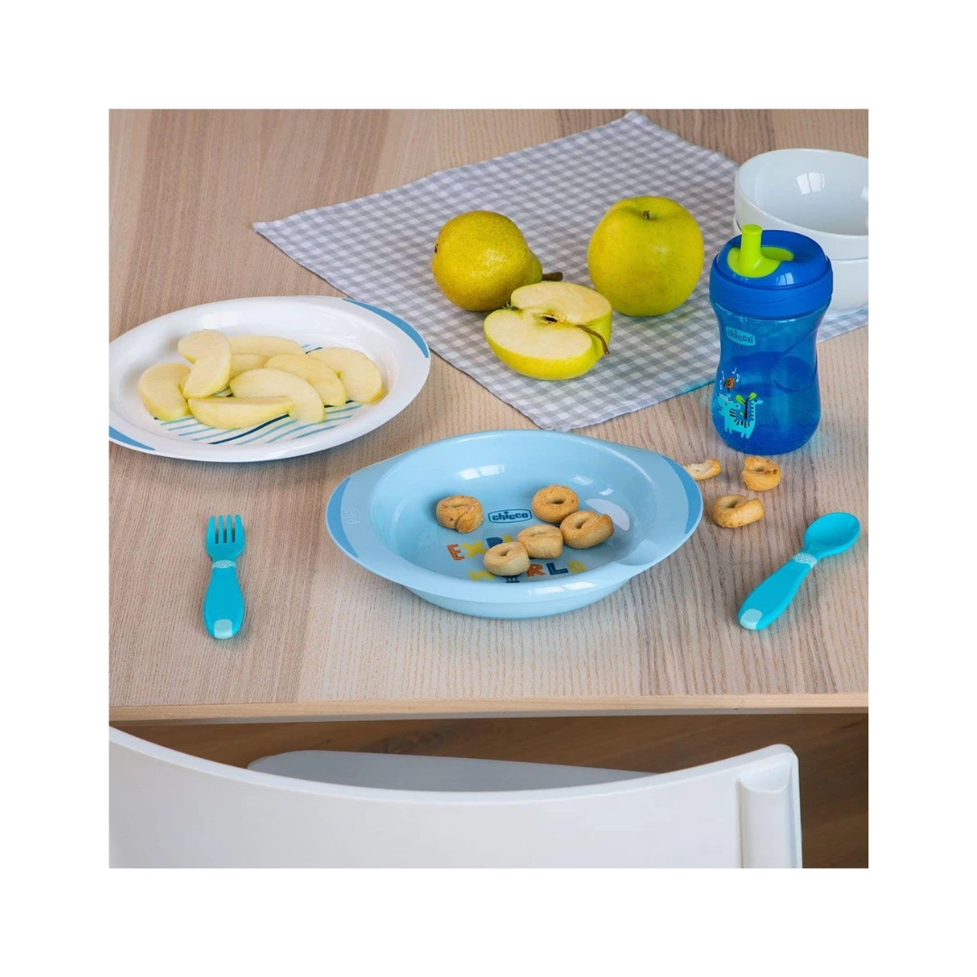 - Diseño Atractivo: El set incluye dos platos con un encantador diseño de «Explore the World», que captura la imaginación de los niños y hace que las comidas sean más divertidas.
