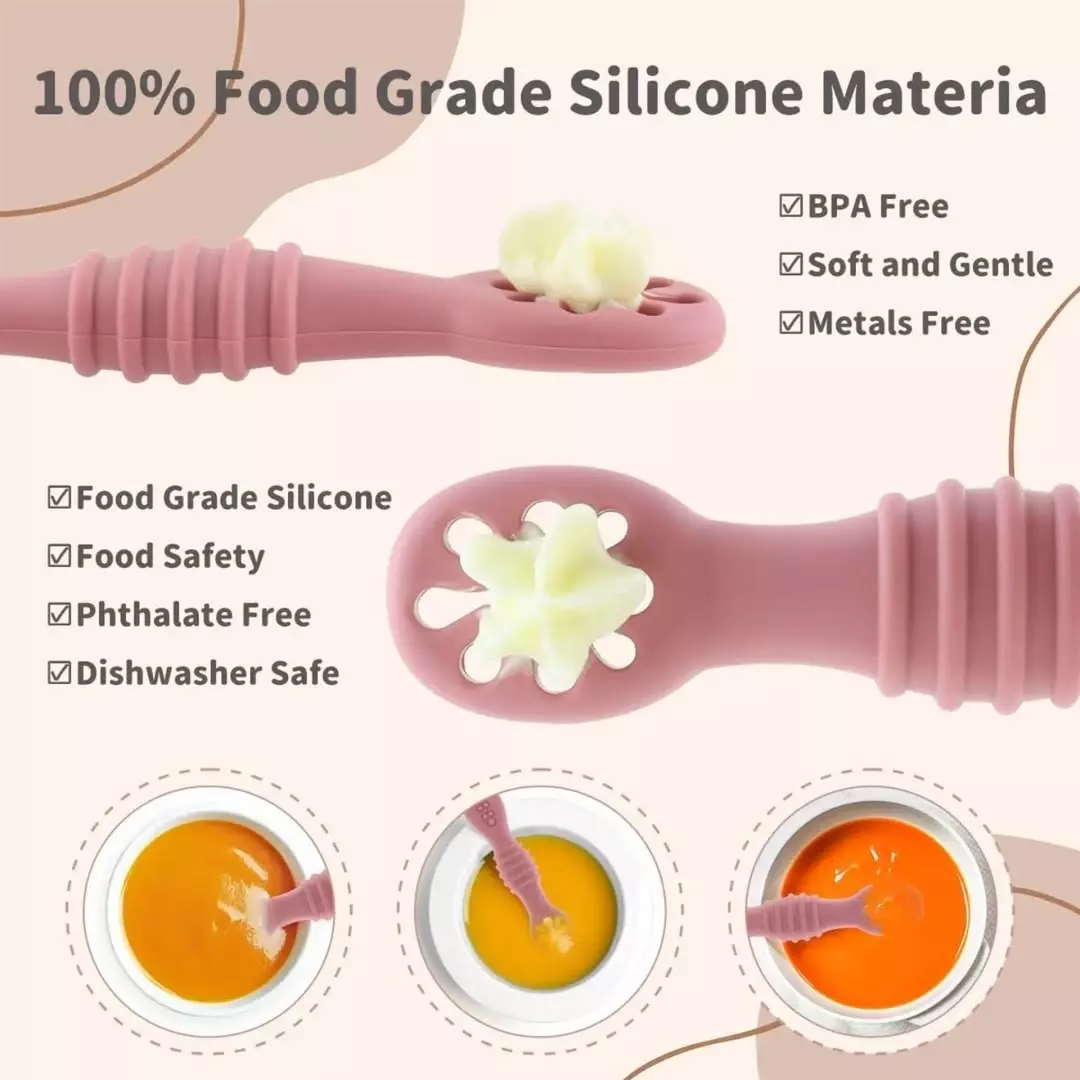 Elementos incluidos: 2 pre cuchara de silicona, 1 cucharita de silicona