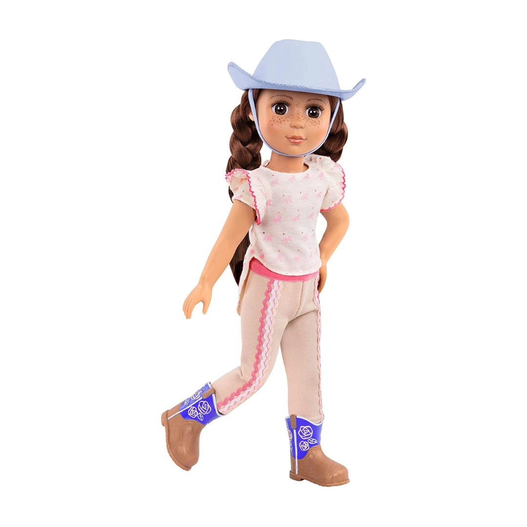 ¡Conoce a la muñeca Glitter Girls, lista para conquistar el oeste con su encantador outfit tejano! Esta adorable muñeca está preparada para todas las aventuras que puedas imaginar, con un estilo que captura perfectamente la esencia del viejo oeste.