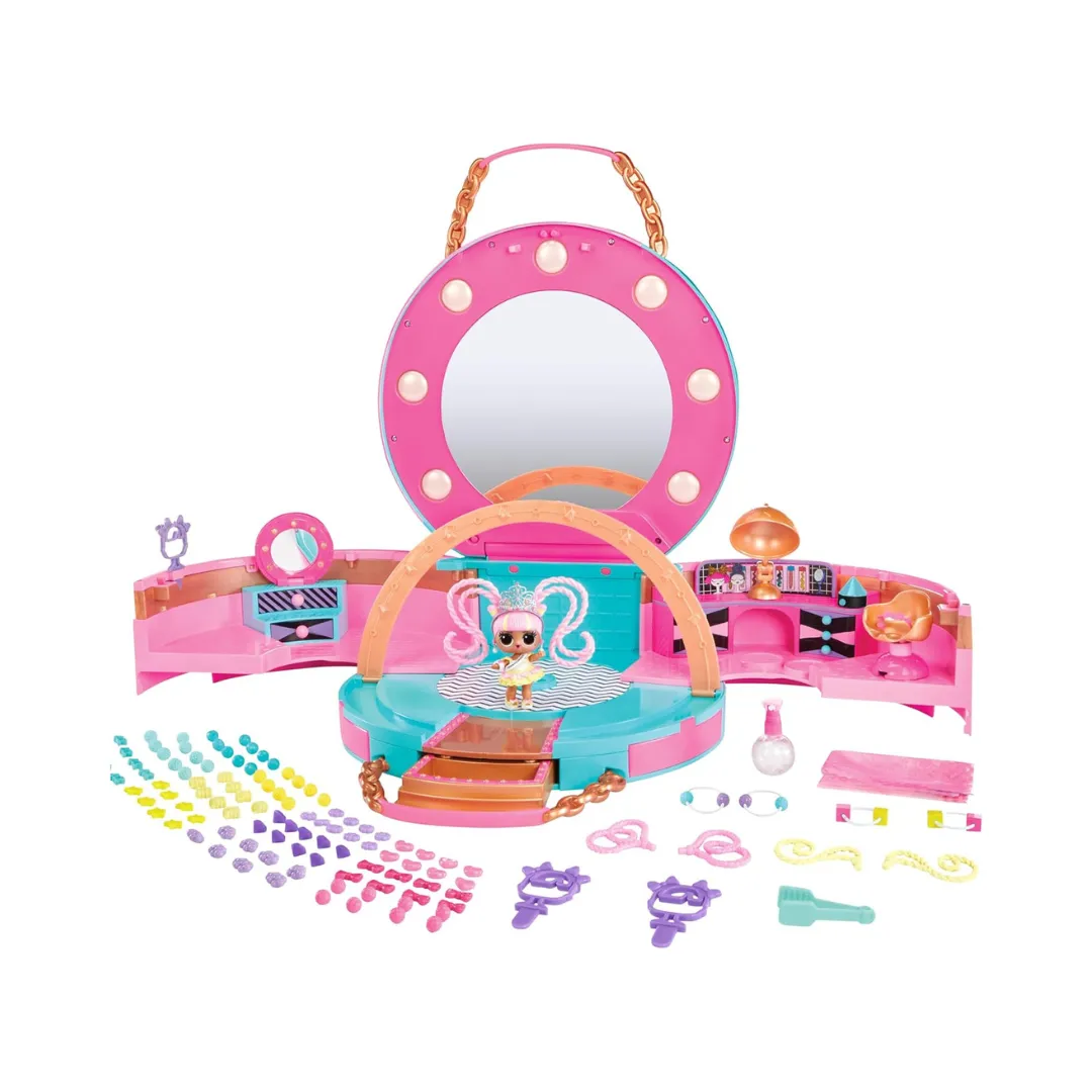 ¡La diversión y el estilo se encuentran en el Set LOL Surprise! Centro de Belleza y Pasarela Glamour! Este espectacular set de juego está diseñado para que los pequeños fans de LOL Surprise! vivan horas de creatividad, moda y fantasía. Incluye una muñeca LOL exclusiva, un tocador con luces, espejo, pasarela giratoria y una variedad de accesorios para peinar, decorar y transformar a la muñeca en una verdadera estrella.
