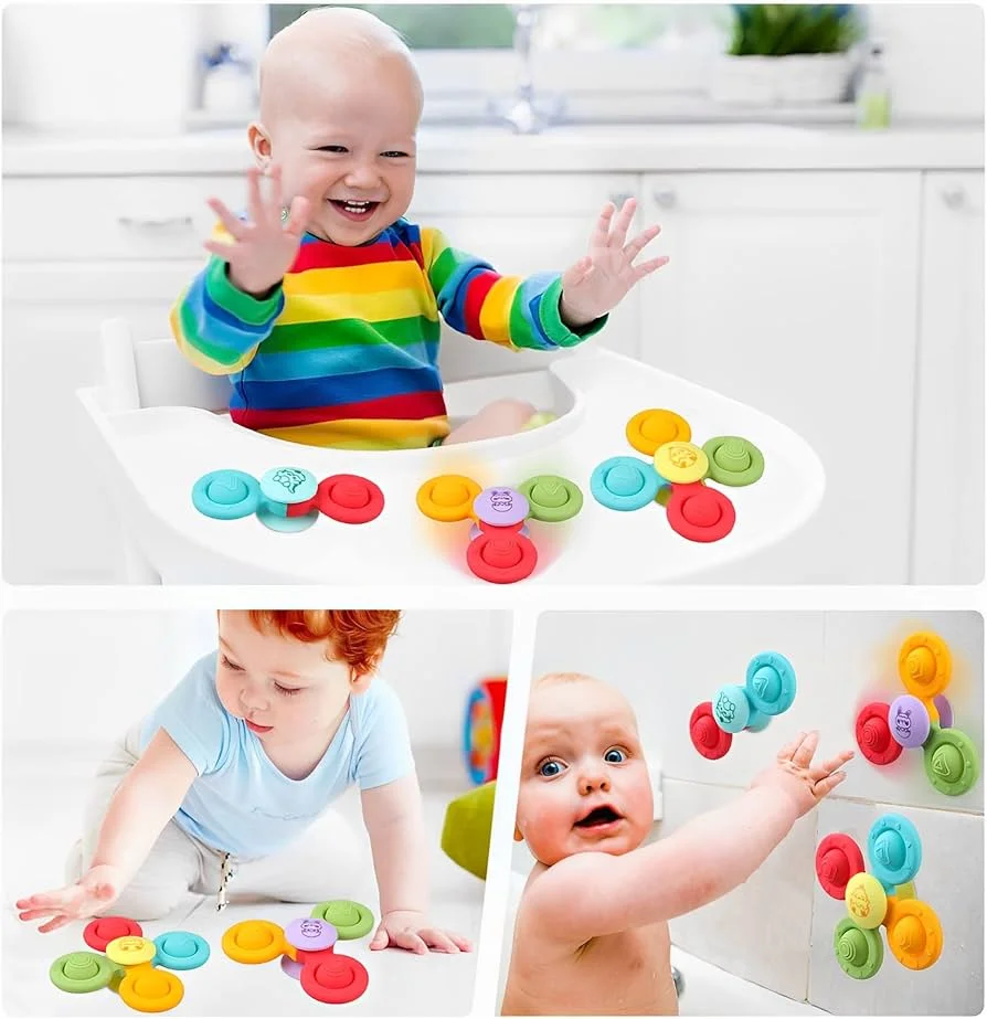 3 Divertidos spinner giratorios que divertirán a tu bebé, es adecuado para todo tipo de superficies lisas, puedes pegarlo en vidrio, paredes, pisos, bañeras, etc., giran muy rápido y no se caen fácilmente.