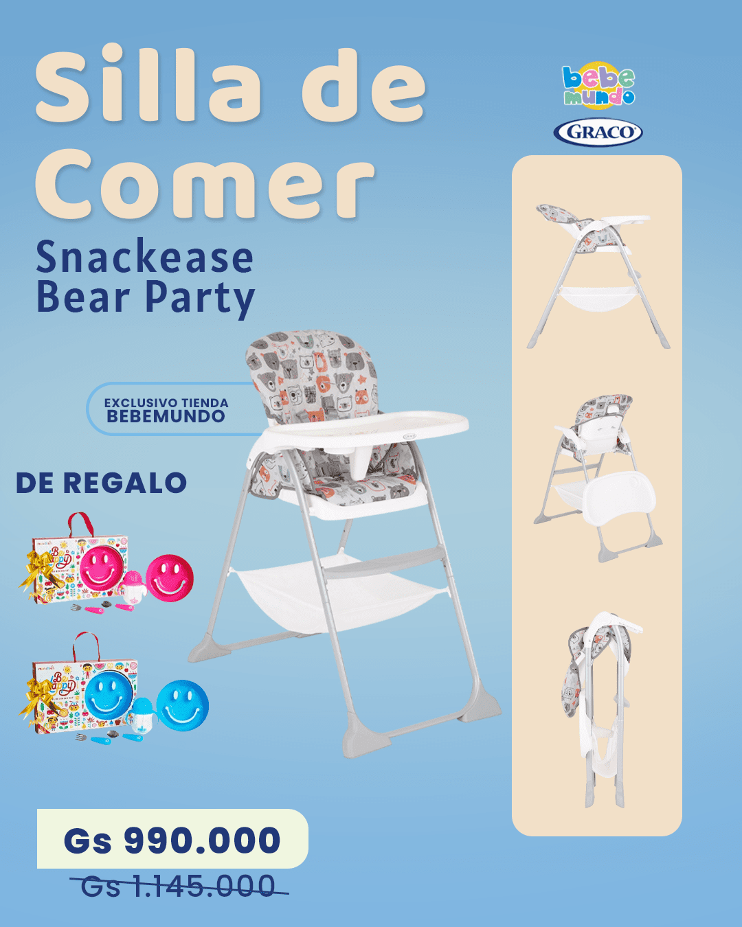 La silla de comer Graco SnackEase Bear Party ofrece comodidad, seguridad y practicidad para la hora de la comida en bebés y niños pequeños. Con un diseño inteligente, esta silla: