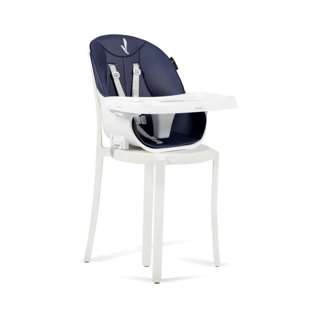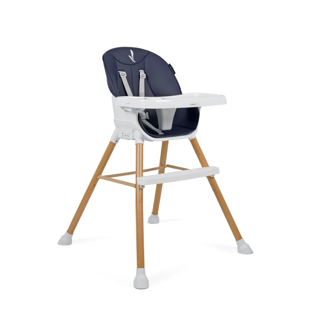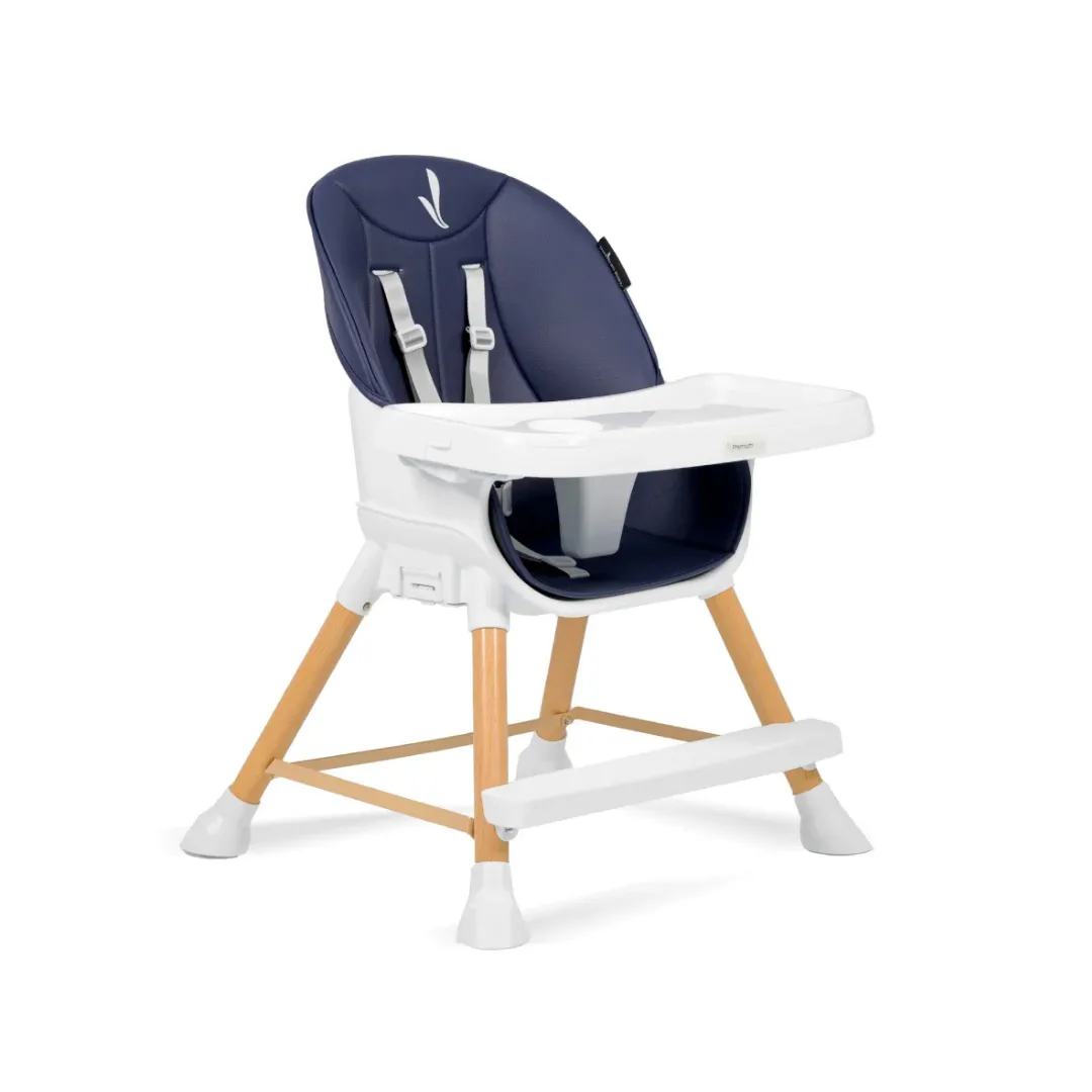 El asiento acolchado en ecocuero facilita la limpieza diaria, mientras que la bandeja doble ajustable y extraíble se adapta a diferentes necesidades. Además, cuenta con un apoyapiés ajustable y patas con bases antideslizantes para mayor estabilidad. Con un diseño moderno en color azul, esta silla no solo es funcional, sino que también aporta un toque de estilo a cualquier espacio.