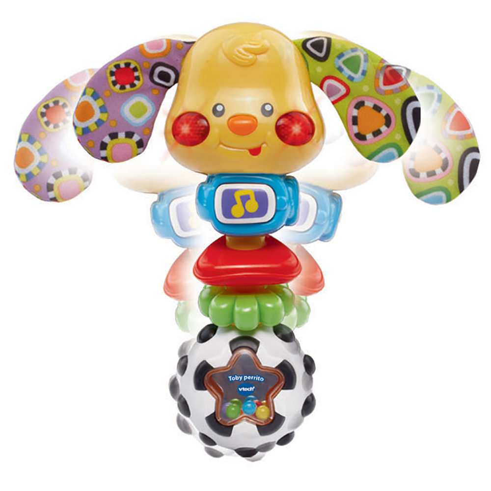 El Sonajero Musical Toby Perrito de VTech es el compañero perfecto para el juego y el desarrollo de tu bebé. Con luces suaves, sonidos divertidos y texturas variadas, estimula los sentidos y fomenta la coordinación motriz desde los primeros meses. Su diseño colorido y fácil de agarrar lo convierte en un juguete ideal para las pequeñas manos.