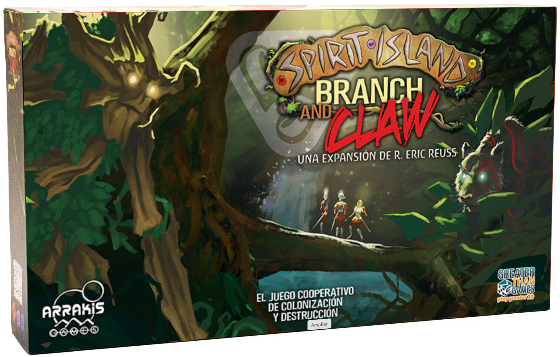 Branch & Claw es la primera expansión para Spirit Island. Introduce 2 nuevos espíritus así como nuevos escenarios y un nuevo adversario. Además con Branch & Claw los jugadores podrán usar las amenazas de la propia isla, como enfermedades y bestias salvajes o provocar el conflicto entre los invasores para que sus disputas jueguen a su favor. Nuevos poderes y cartas de miedo añaden variabilidad al juego y permiten explotar estas nuevas mecánicas en nuestro beneficio.