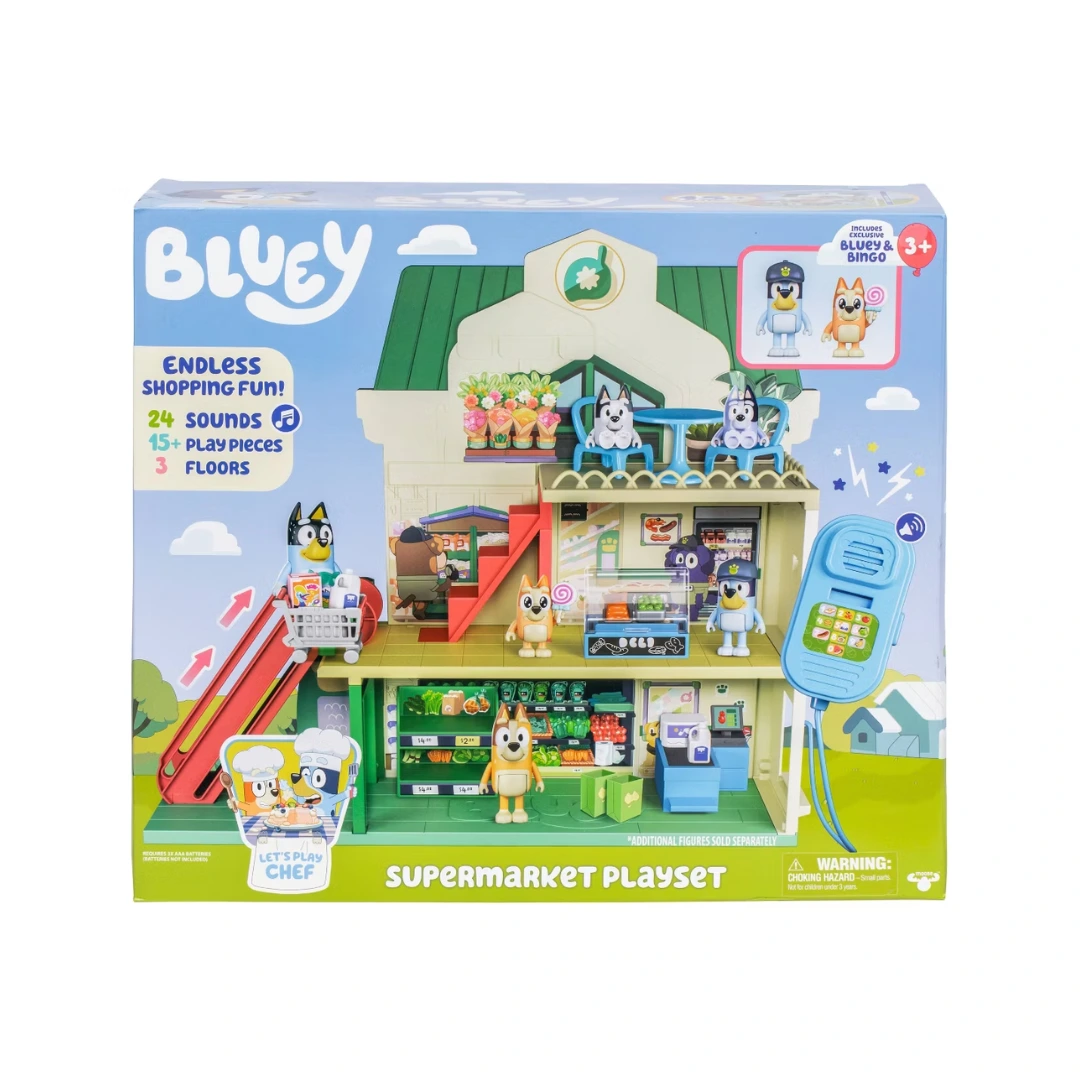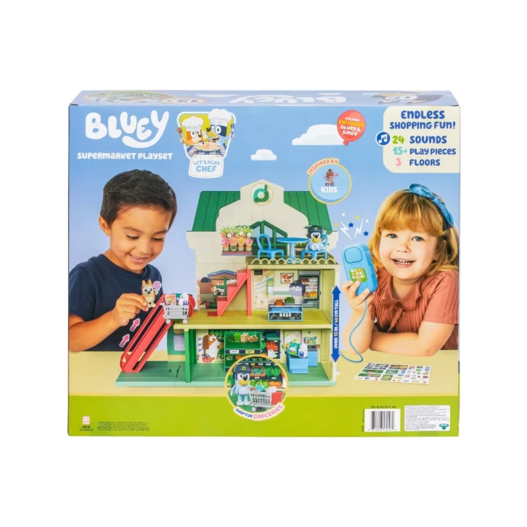 El Supermercado Bluey Playset ofrece horas de diversión con un colorido escenario inspirado en el mundo de Bluey. Este set cuenta con 3 pisos, múltiples áreas de juego, accesorios y sonidos interactivos que hacen la experiencia mucho más realista.