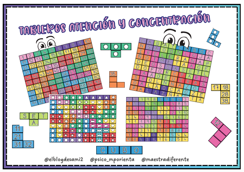 Tableros completos y orientados para trabajar la concentración y la atención con fichas de tetris.