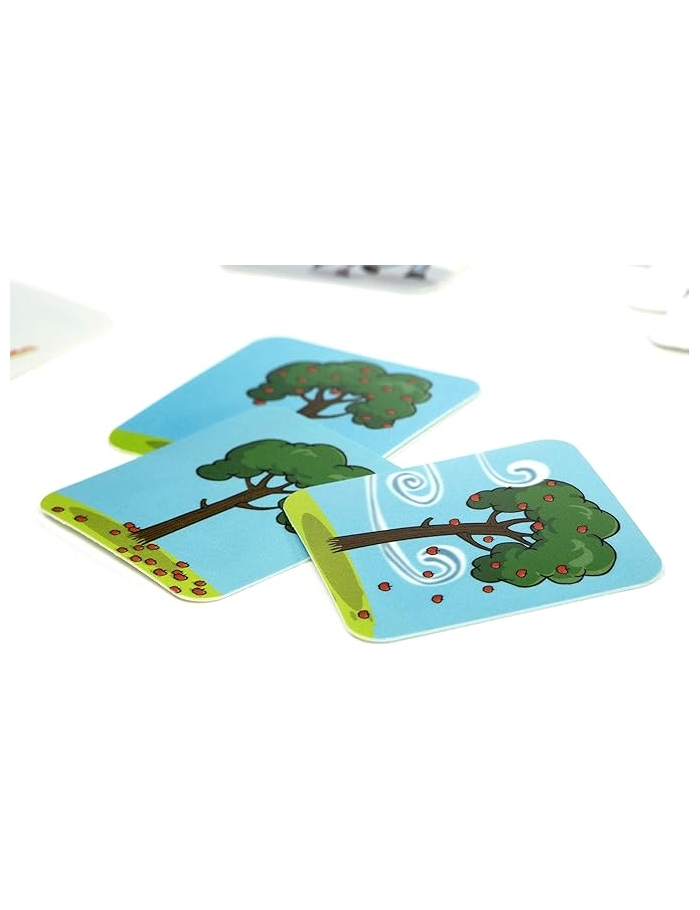 Tarjetas para ordenar pequeñas historias y conocer las nociones temporales. Permite organizar secuencias y verbalizar las imágenes narrando la historia forma coherente. Desarrollan el pensamiento lógico y la expresión verbal.