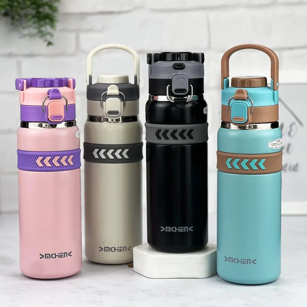 - La botella de agua de acero inoxidable con aislamiento al vacío de 750 ml con boquilla abierta y tapa, mantiene temperaturas.