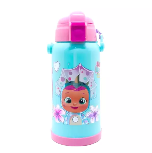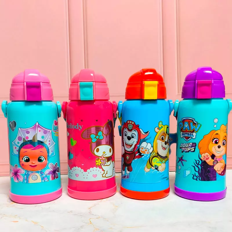 Práctica botella de un material muy resistente. Tiene un diseño original y un práctico tapón antigoteo para que puedas beber cómodamente tantas veces como necesites. También tiene una correa para el hombro para facilitar el transporte. Viene en una amplia variedad de diseños basados en algunos de los personajes más famosos del cine y la televisión.
