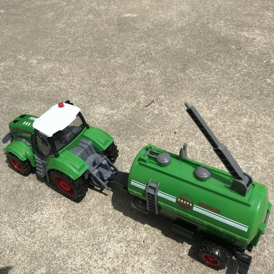 Este tractor a control remoto con cisterna es perfecto para los pequeños fanáticos de los vehículos y el campo. Con un diseño realista y funciones que permiten dirigirlo fácilmente, ofrece una experiencia de juego entretenida y dinámica.