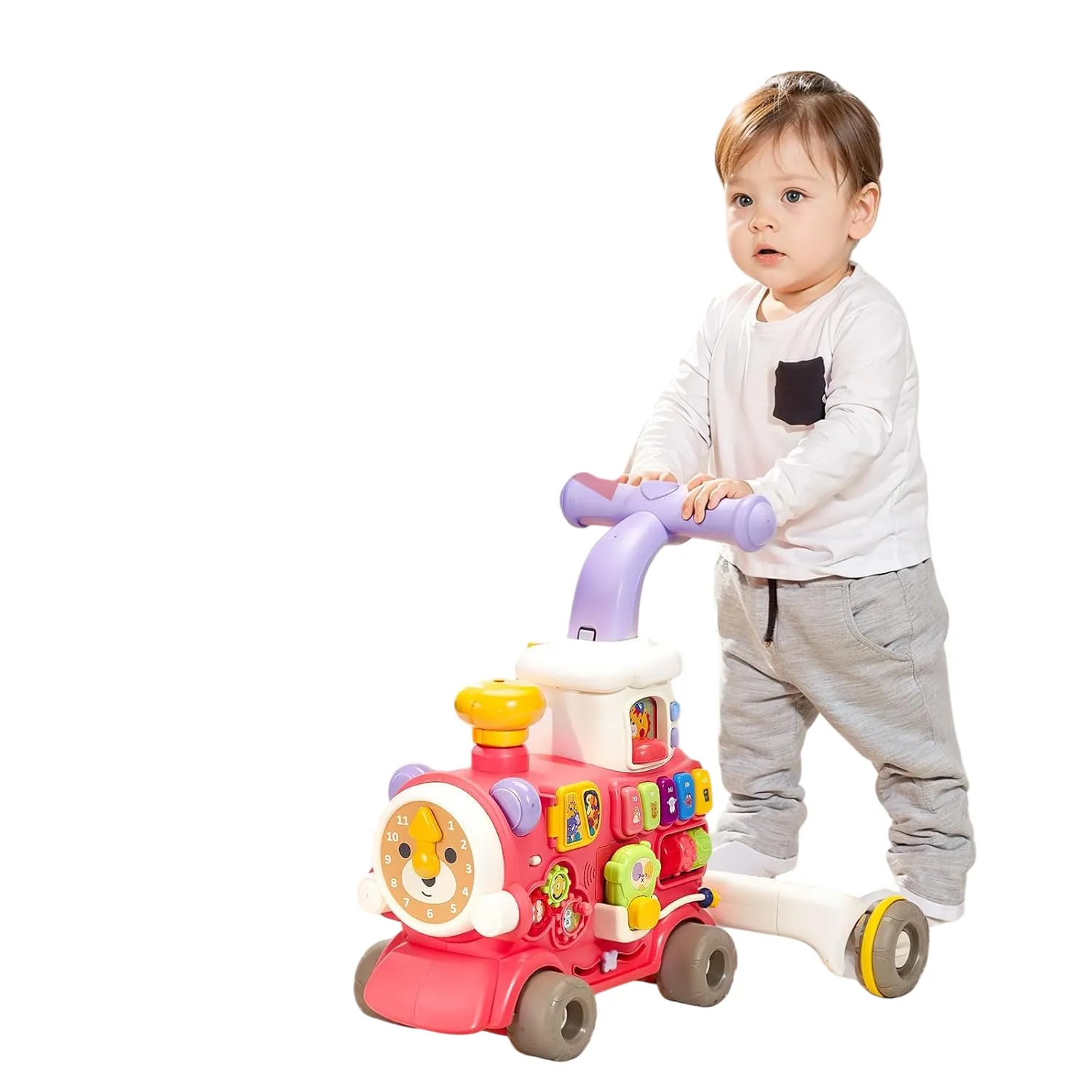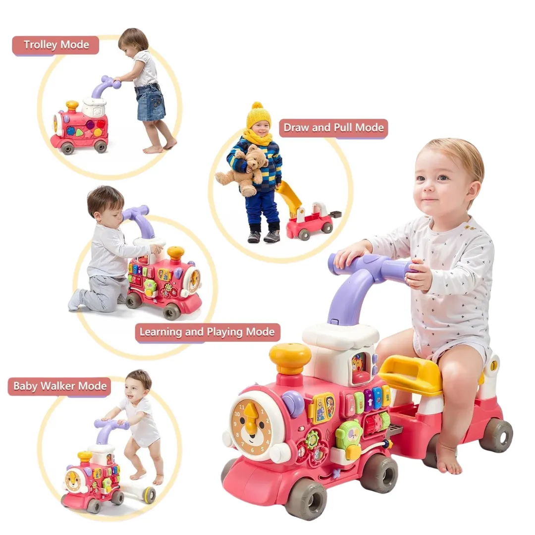 Fabricado en materiales resistentes y seguros, este tren combina aprendizaje y entretenimiento con luces, sonidos y colores atractivos que captan la atención del bebé. Ideal para usar en casa o al aire libre, es un juguete que crece con tu hijo, adaptándose a cada etapa de su desarrollo.