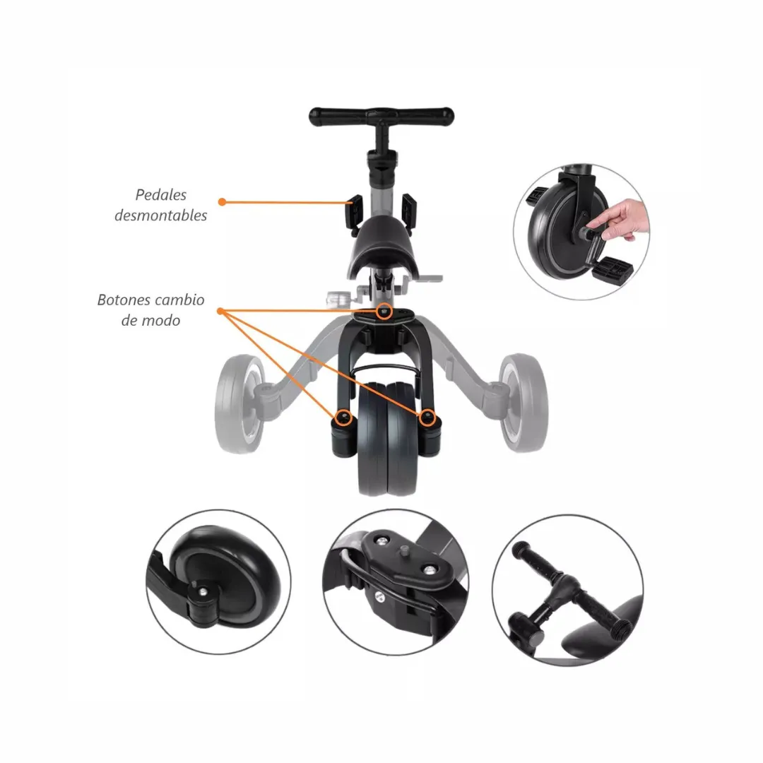 Su versatilidad permite ahorrar espacio y dinero, ya que combina tres vehículos en uno. Además, ayuda a desarrollar la coordinación, el equilibrio y la motricidad de manera divertida y activa. Disponible en varios colores, con empuñaduras cómodas y sillín ergonómico, el triciclo Kalima garantiza horas de juego al aire libre mientras tu hijo aprende y crece.