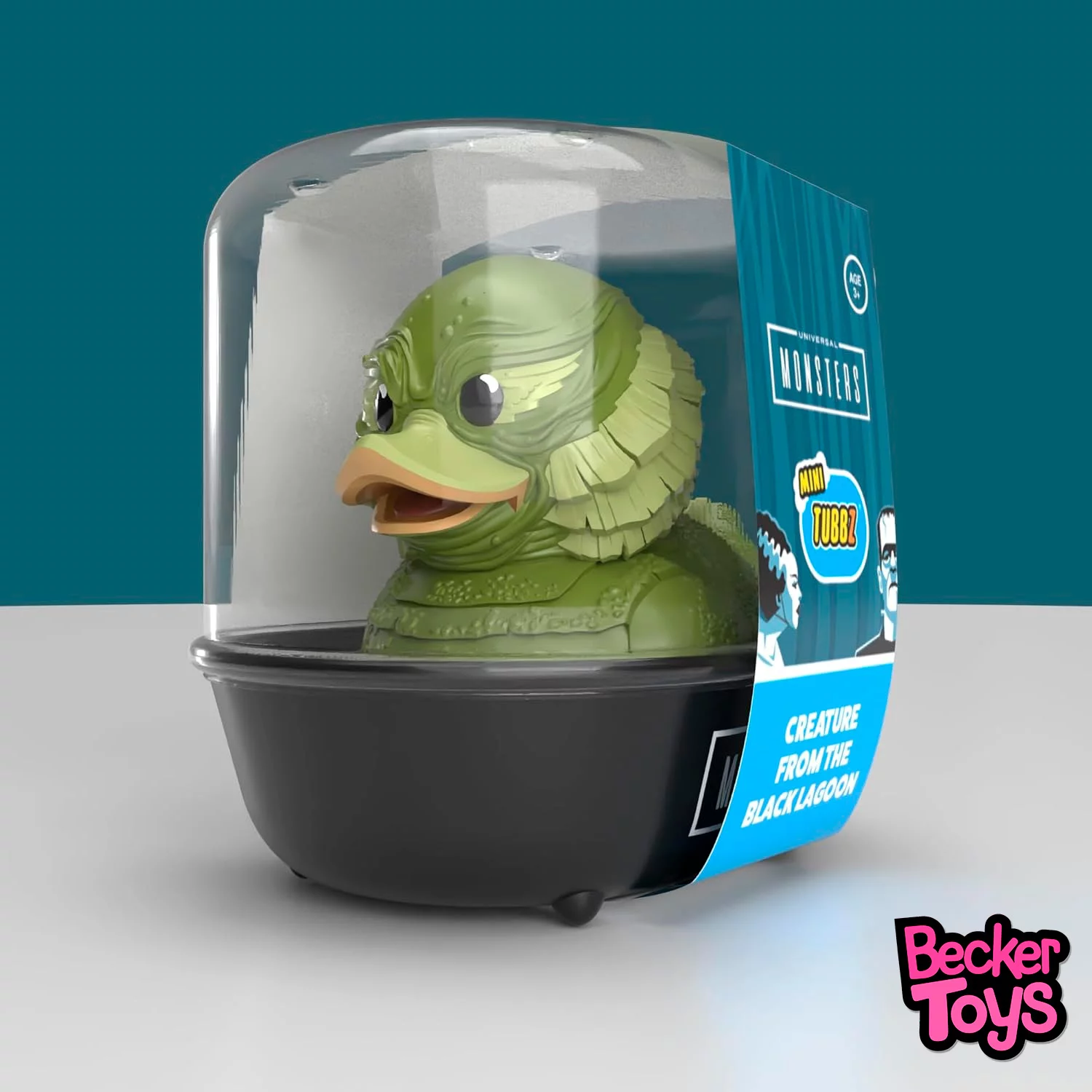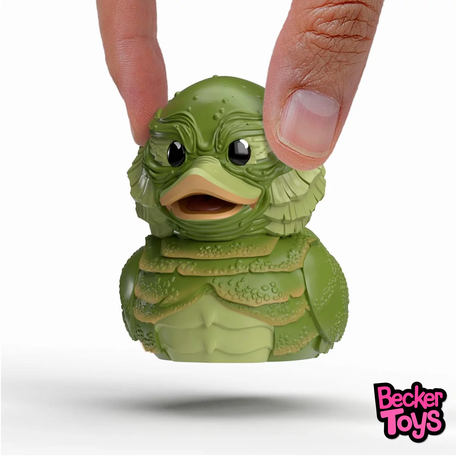 La figura TUBBZ Mini – La Criatura de la Laguna Negra (5 cm) de Numskull transforma al icónico monstruo acuático en un pato coleccionable con estilo retro y encanto terrorífico. Es parte de la línea TUBBZ Cosplaying Ducks – Universal Monsters.