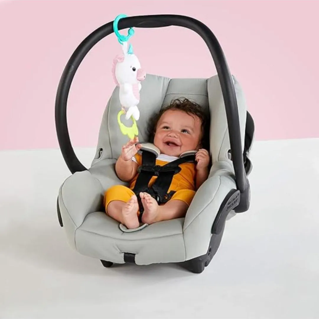 •Clip fácil de sujetar: Incluye un gancho resistente que se adapta a cochecitos, sillas de auto y cunas para asegurar el juguete de manera rápida y segura.