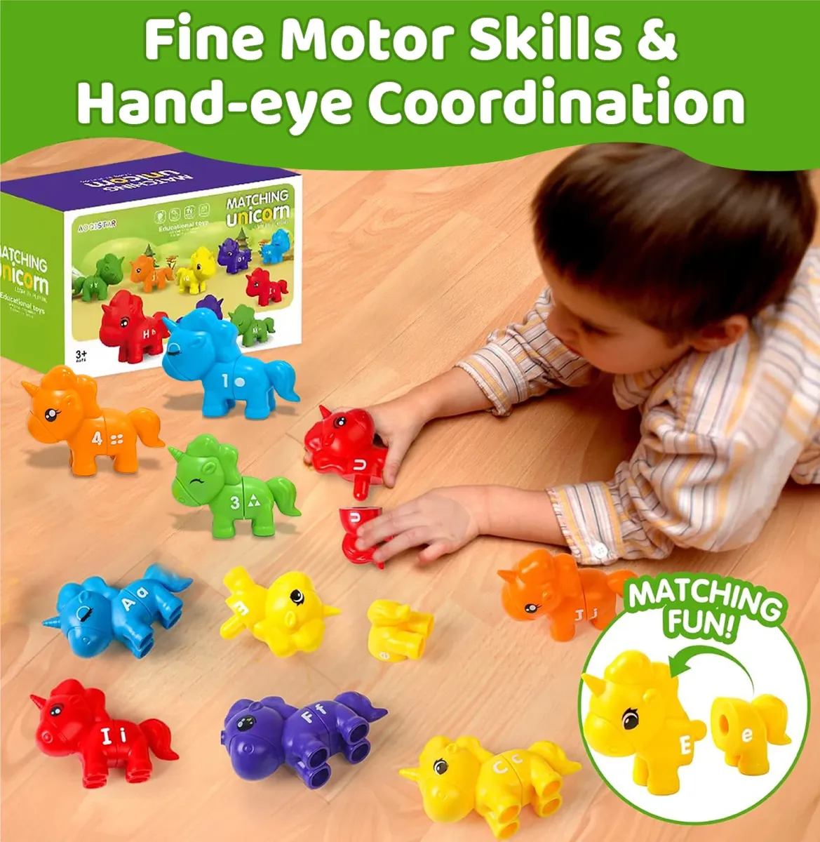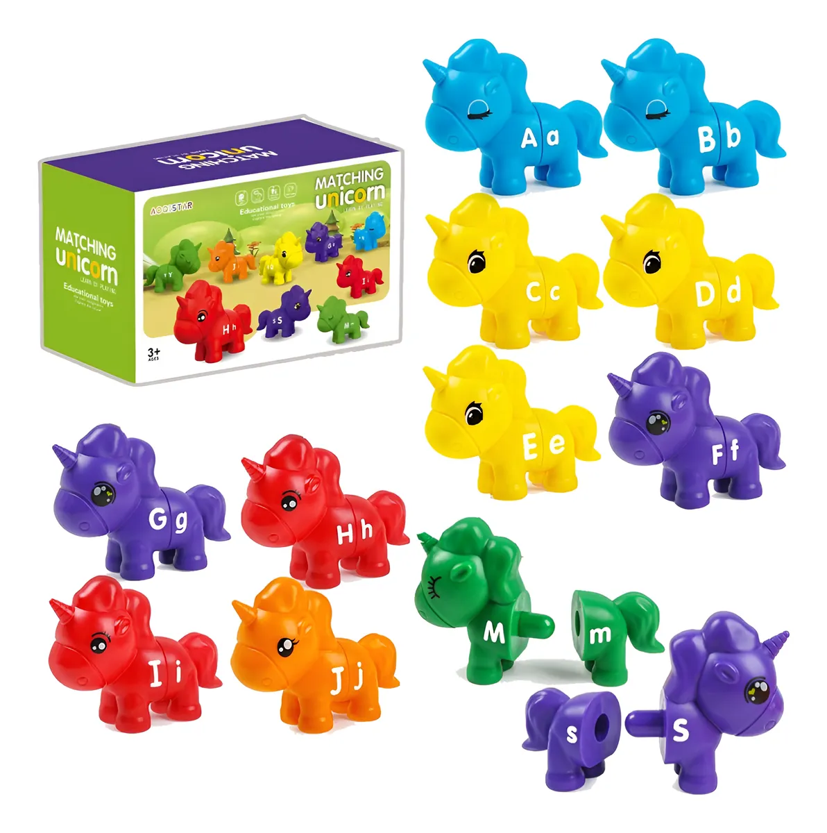 🦄 Juego de Emparejar Dinosaurios- Viene con 13 coloridos juguetes de unicornio de doble cara con letras del abecedario.