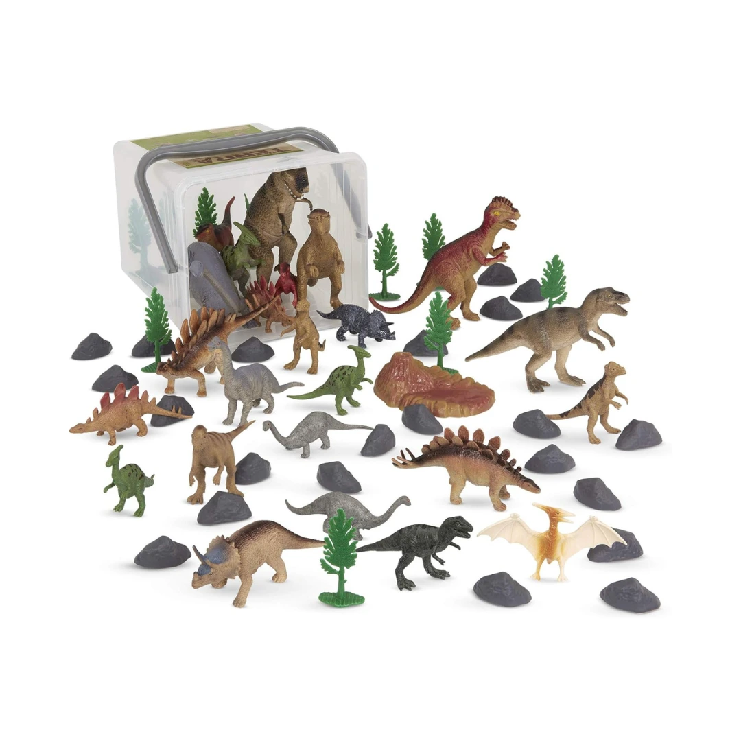 • Set Completo de 60 Piezas: Incluye una variedad de figuras de dinosaurios, árboles, rocas y otros elementos del entorno prehistórico para recrear escenas jurásicas realistas.