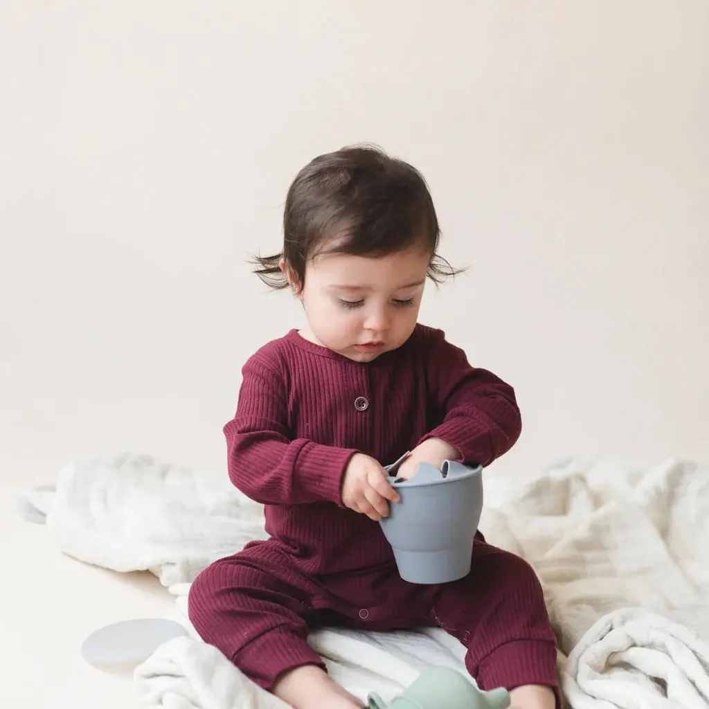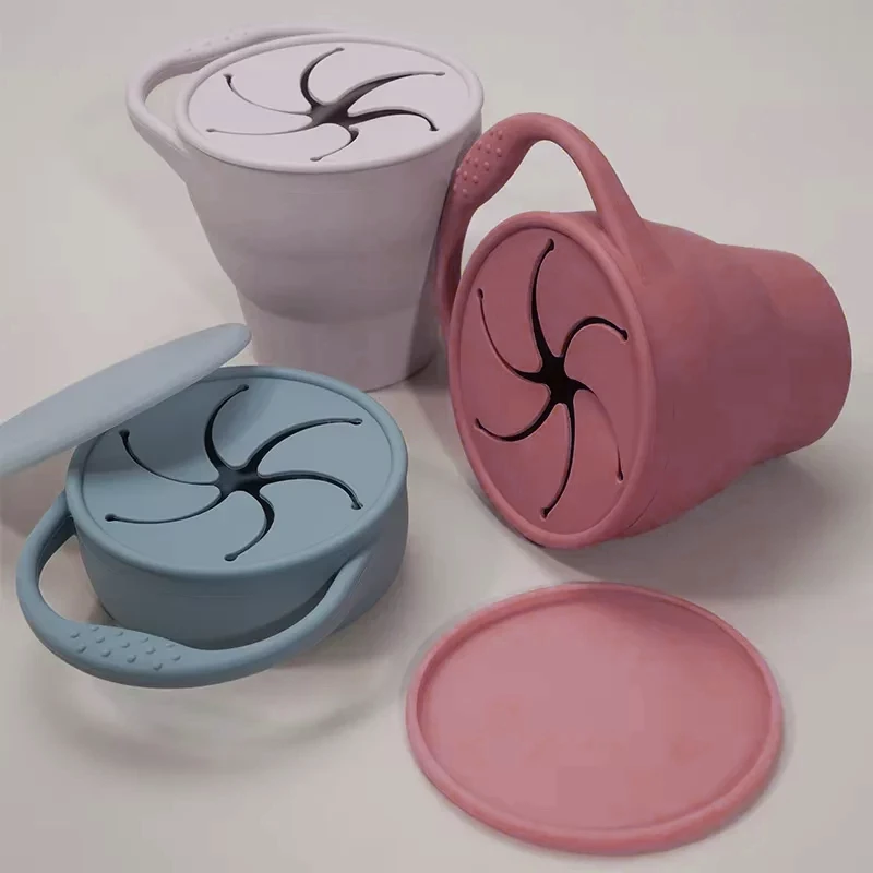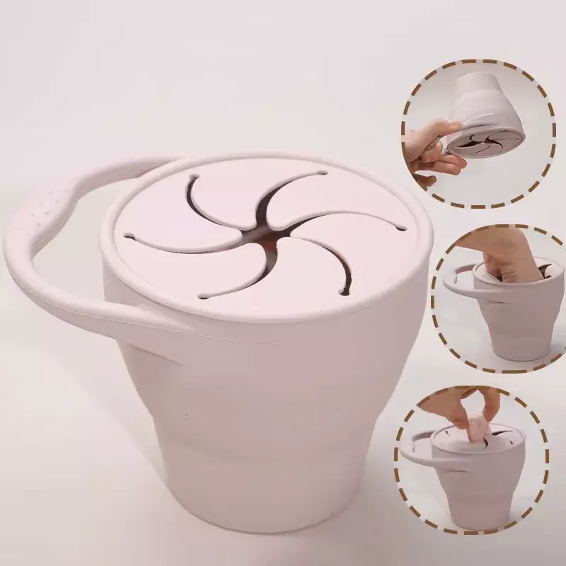 El vaso de silicona plegable con tapa es el compañero perfecto para la hora del snack o la comida complementaria. Su diseño portátil permite que tu pequeño disfrute sus frutas, cereales o galletas en casa o fuera de ella.