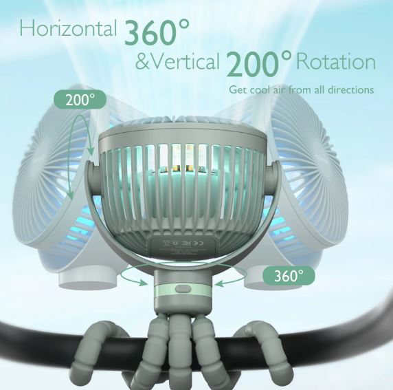 - Conveniente y duradero: El cabezal del ventilador y el trípode son desmontables, lo que facilita enormemente la carga. Simplemente retira el cabezal sin necesidad de volver a fijarlo. El trípode está fabricado con metal y silicona de alta calidad, lo que permite doblarlo en cualquier ángulo, sujetarlo, enrollarlo o colocarlo de pie.